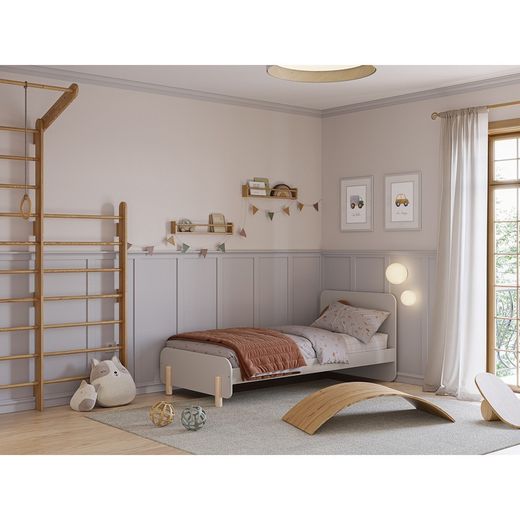 Cama individual, 195,4 x 106,5 x 90 cm, de madera en color crema | Colección Nora