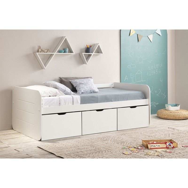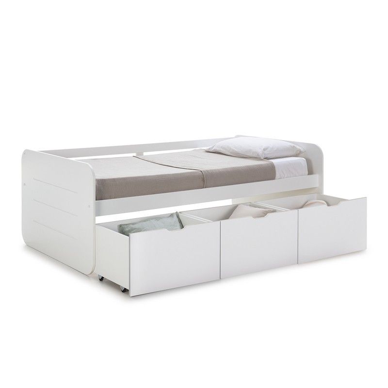 Cama para colchón de 90 cm, 195,2 x 105 x 70 cm, de madera en blanco | Colección Abbot