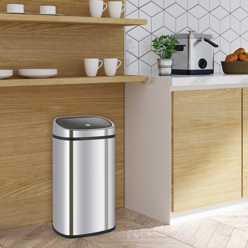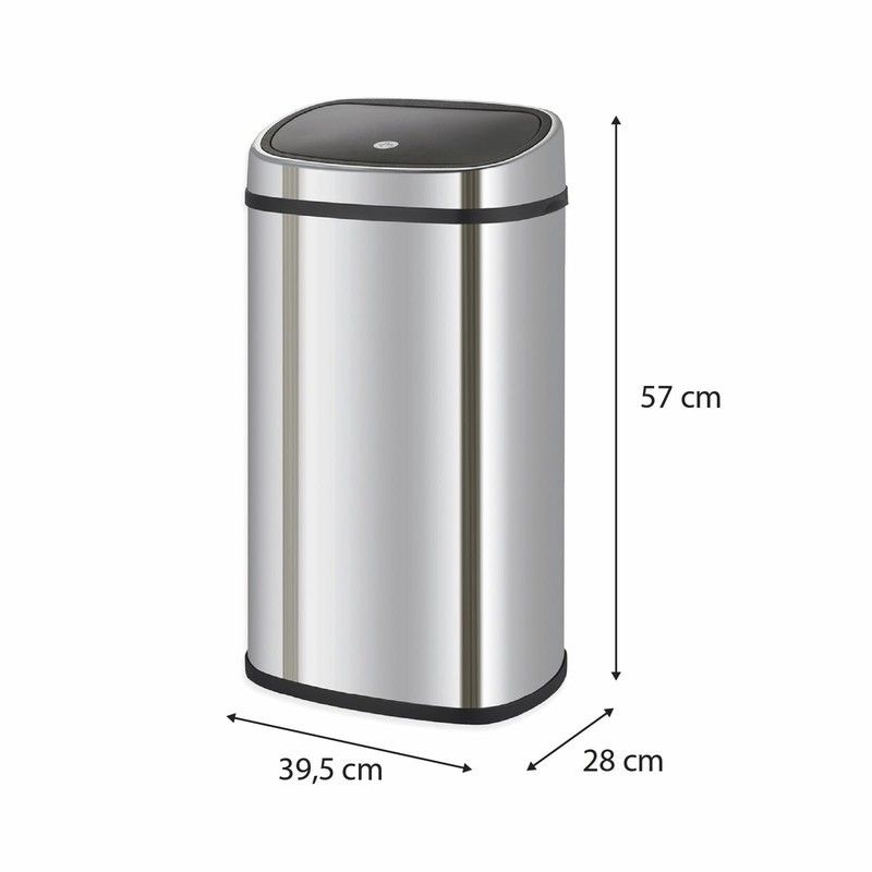 Cubo de reciclaje, 39,5 x 28 x 57 cm, de acero inoxidable y abs en plata | Colección Futuro
