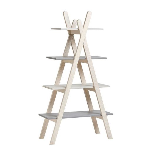 Estantería, 80 x 35 x 146 cm, de madera en blanco y grises | Colección Sia