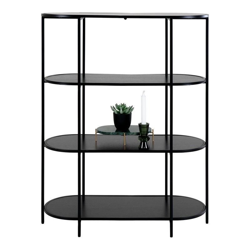Estantería oval, 85 x 36 x 111 cm, de madera y acero en negro | Colección Vita