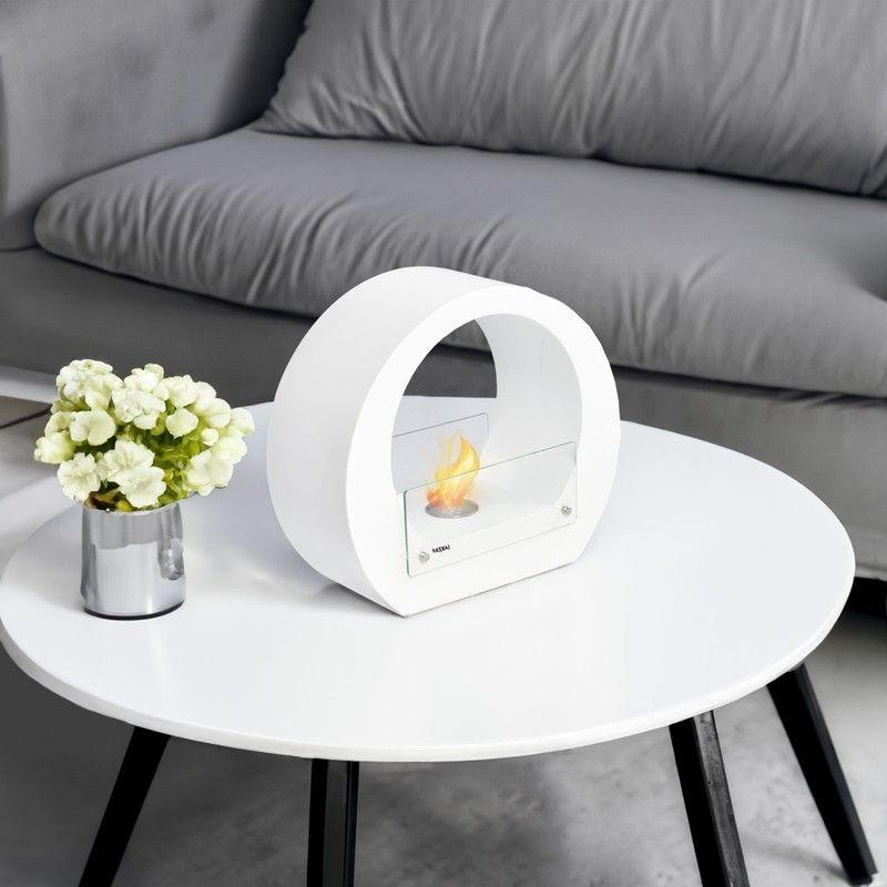 Estufa de bioetanol, 40 x 18,2 x 35 cm, de acero y vidrio en blanco | Colección Vesubio