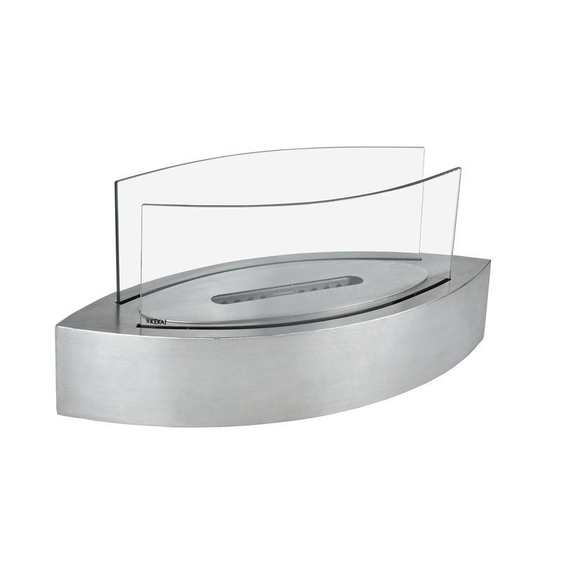 Estufa de bioetanol, 50,8 x 20,3 x 23 cm, de acero y vidrio en plateado | Colección Fuji