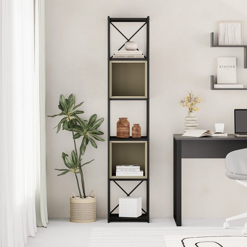 Librería, 36 x 39 x 179 cm, de madera y metal en negro y verde | Colección Anya