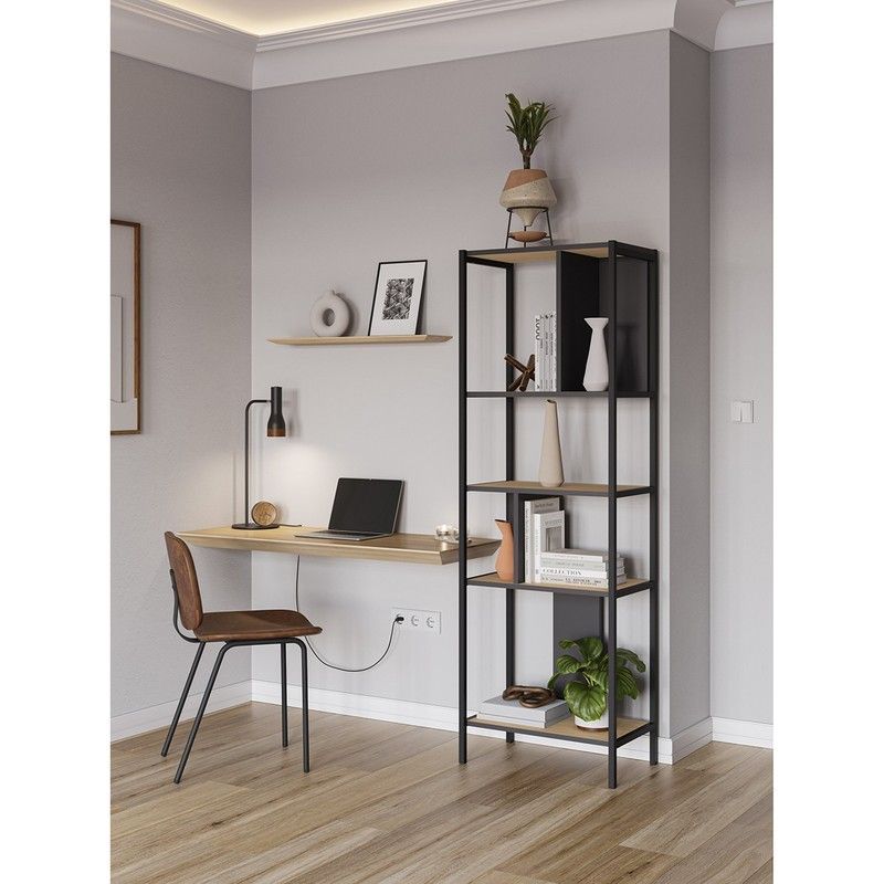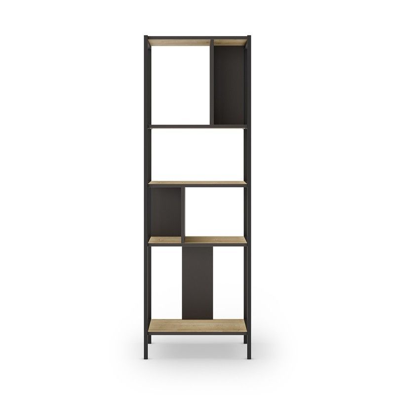 Librería, 58 x 35 x 175 cm, de madera y metal en negro y color roble | Colección Alabama