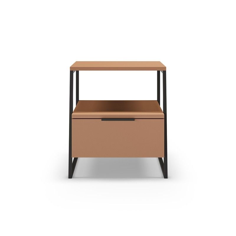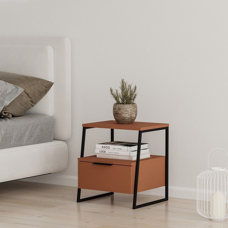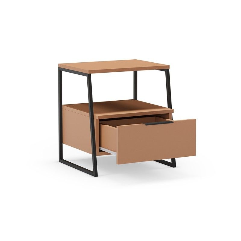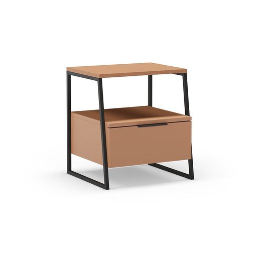 Mesita de noche, 45 x 40 x 50 cm, de madera y metal en terracota y negro | Colección Velia