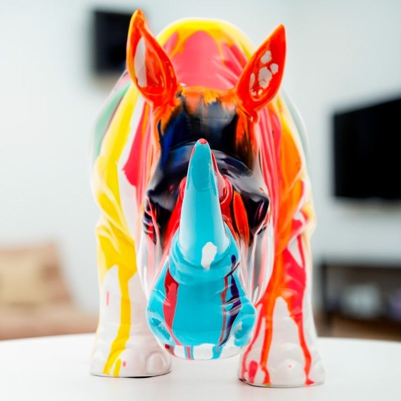 Rinoceronte, 54 x 18 x 24 cm, de poliresina multicolor