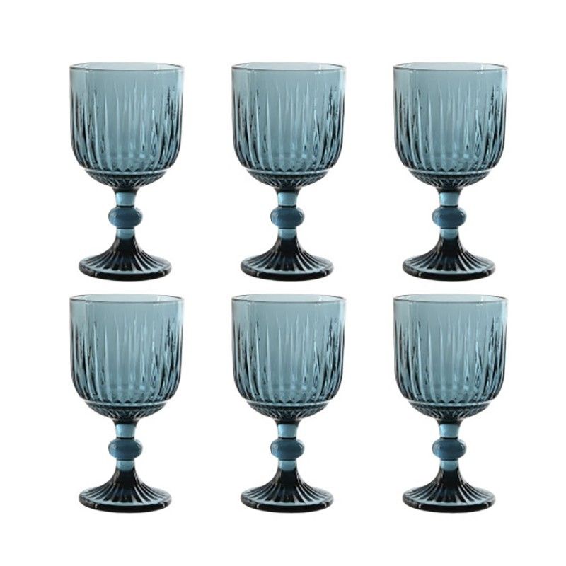 Set de 6 copas de agua, 8,8 x 8,8 x 16,3 cm, de cristal en azul | Colección Striped