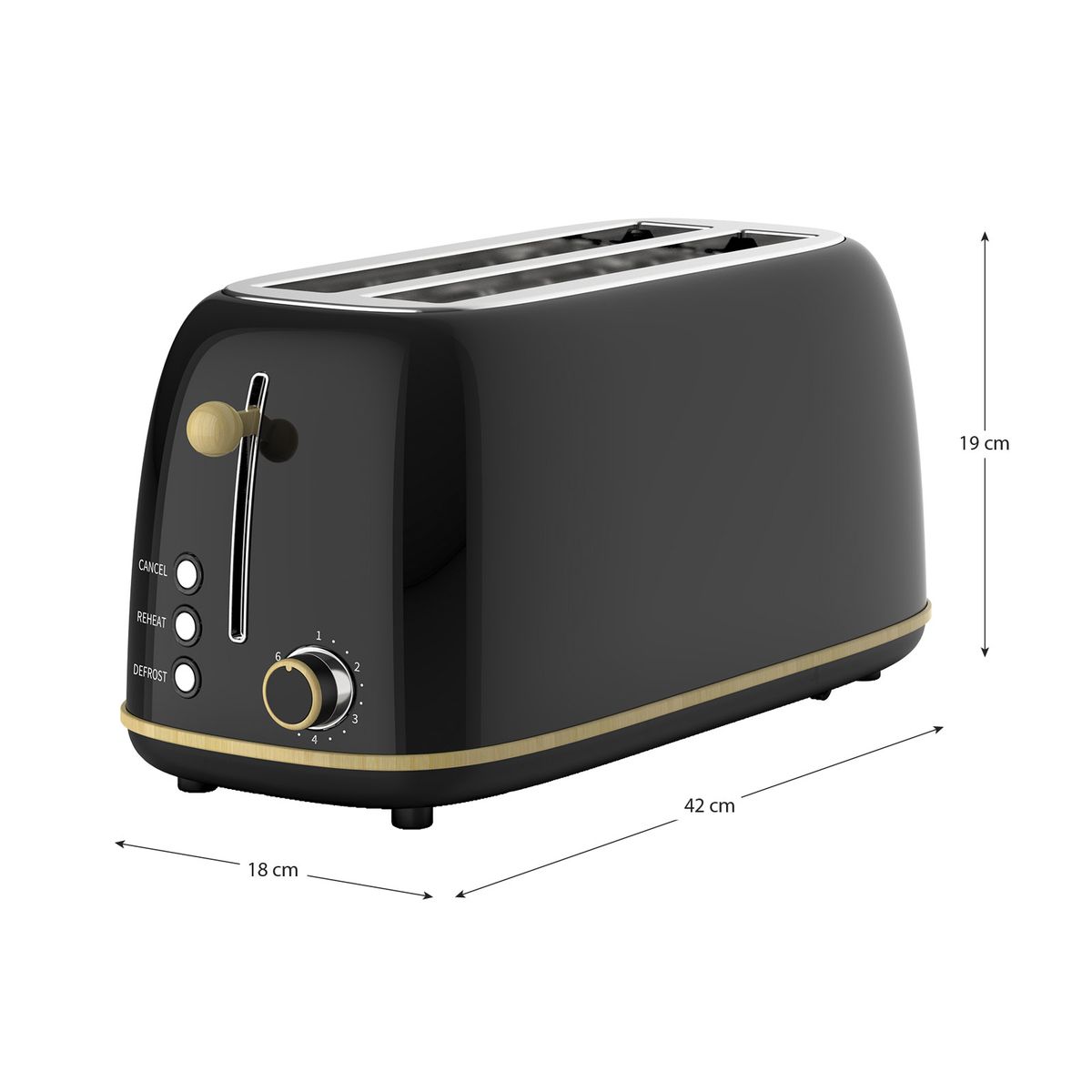 Tostador XL en negro, 42 x 18 x 19 cm | Kaito